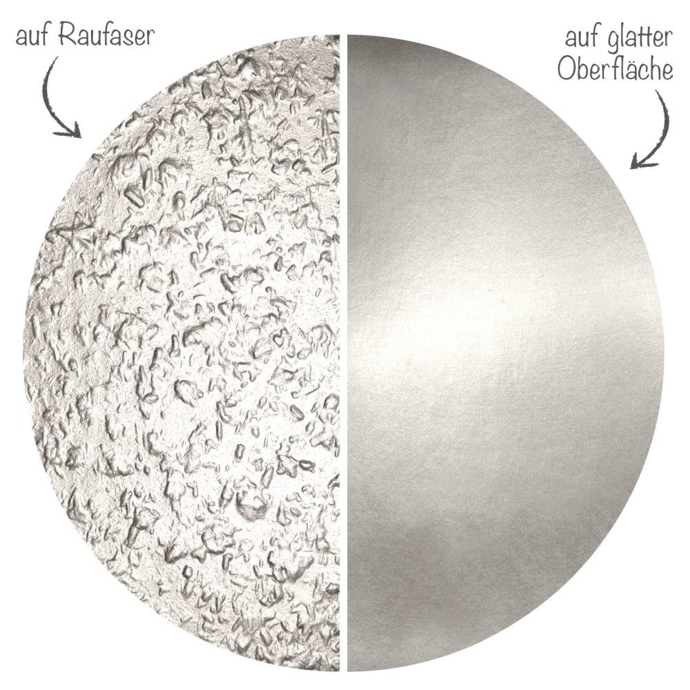 The paint is wipe‑resistant (wischfest), offering excellent adhesion on a wide range of surfaces such as paintable textured wallpaper (Raufaser), non‑woven wallpaper (vlies), plaster, filler, concrete or existing wall paint. Even users with little experience can achieve professional results. Available in multiple metallic shades, it is perfect for living rooms, bedrooms, hallways, offices, studios and commercial interiors that require a durable and authentic metallic effect.
