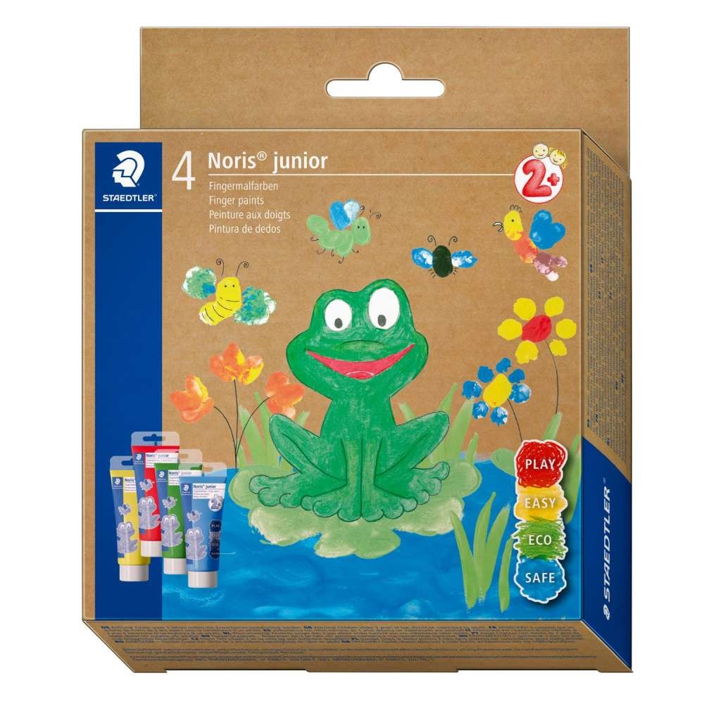 Set of 4 colors for finger painting, from Noris Staedtler, for children from 2 years old, contains 4 tubes of 75 ml each, colors: yellow, red, green, blue.