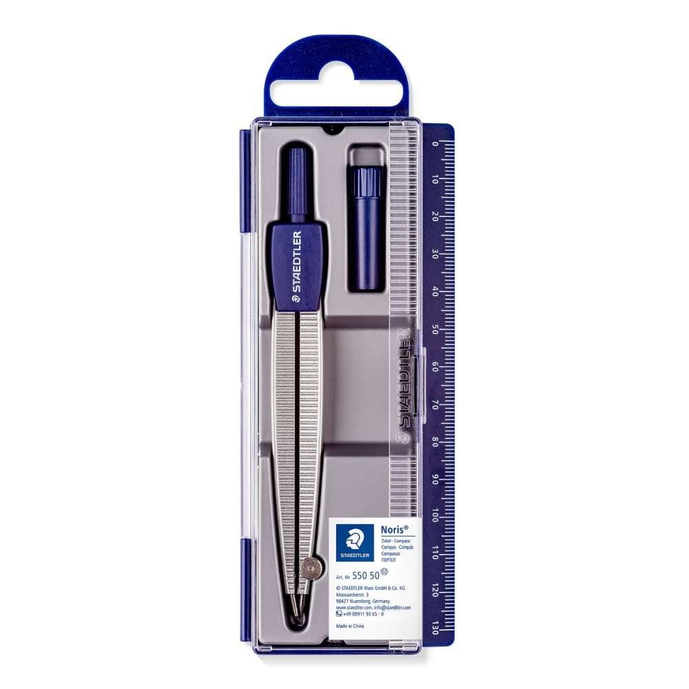 Precision school compass, with lead set, box with 13 cm ruler, maximum circle diameter of 300 mm, from Staedtler, code 550-50.