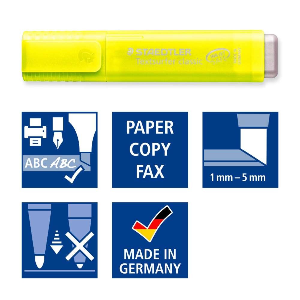 Set of 8 highlighters 1-5mm (textmarkers) with beveled tip, high durability, for copier, fax and indigo paper, from Staedtler.